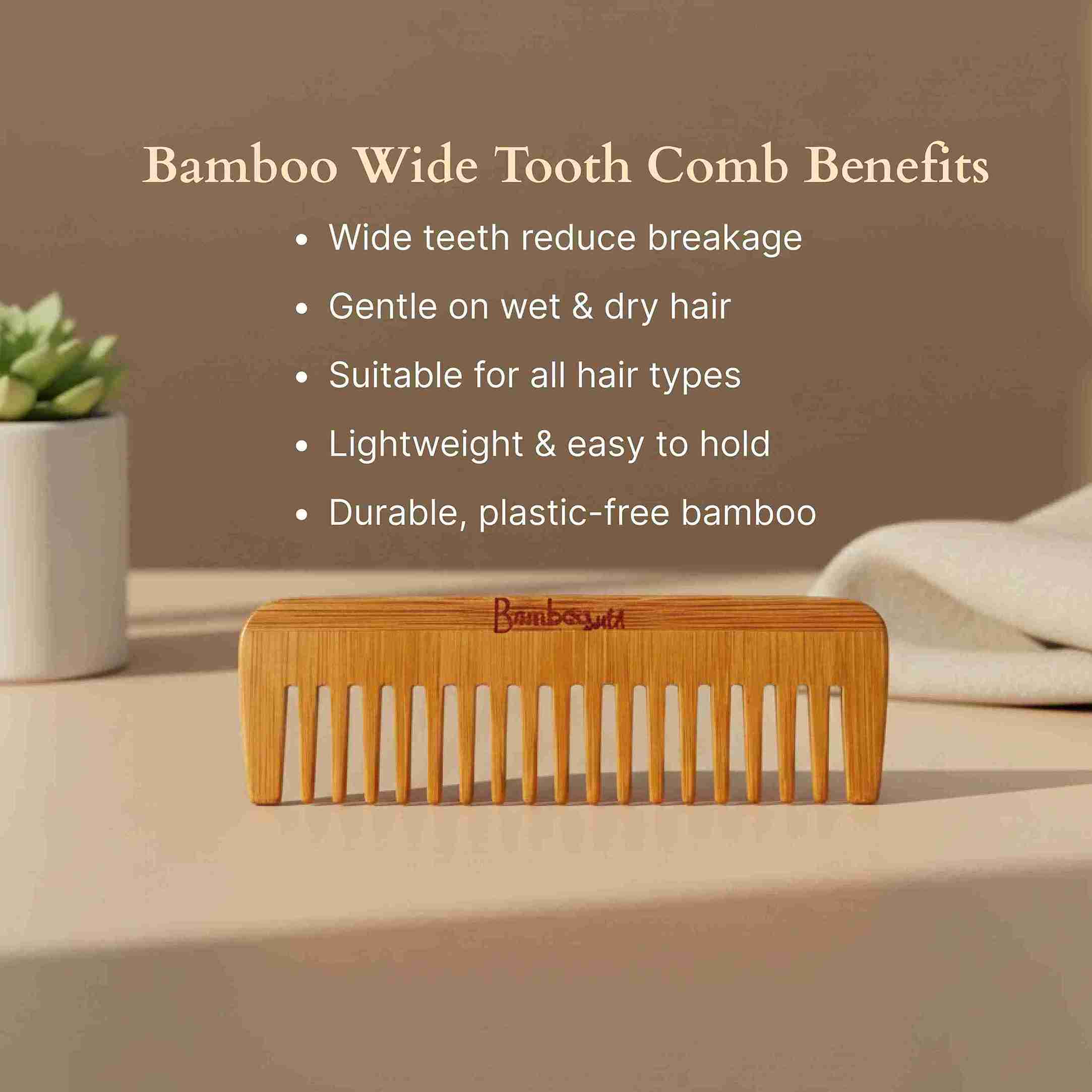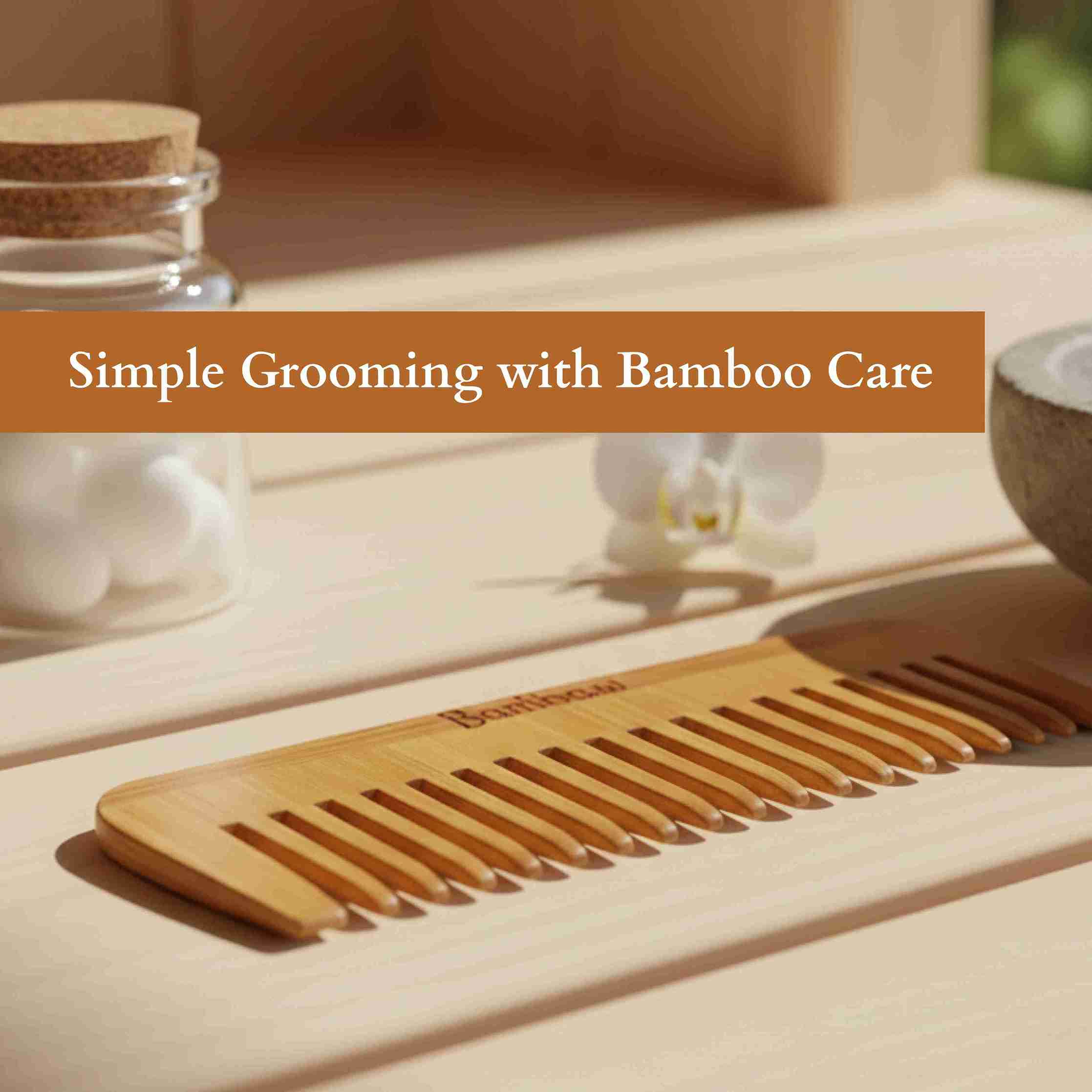Say goodbye to breakage and hello to easy, breezy hair days. Our bamboo wide-tooth comb is designed to gently glide through wet or dry hair, detangling without the drama. The wide spacing of the teeth makes it perfect for all hair types — curls, waves, and straight strands alike.